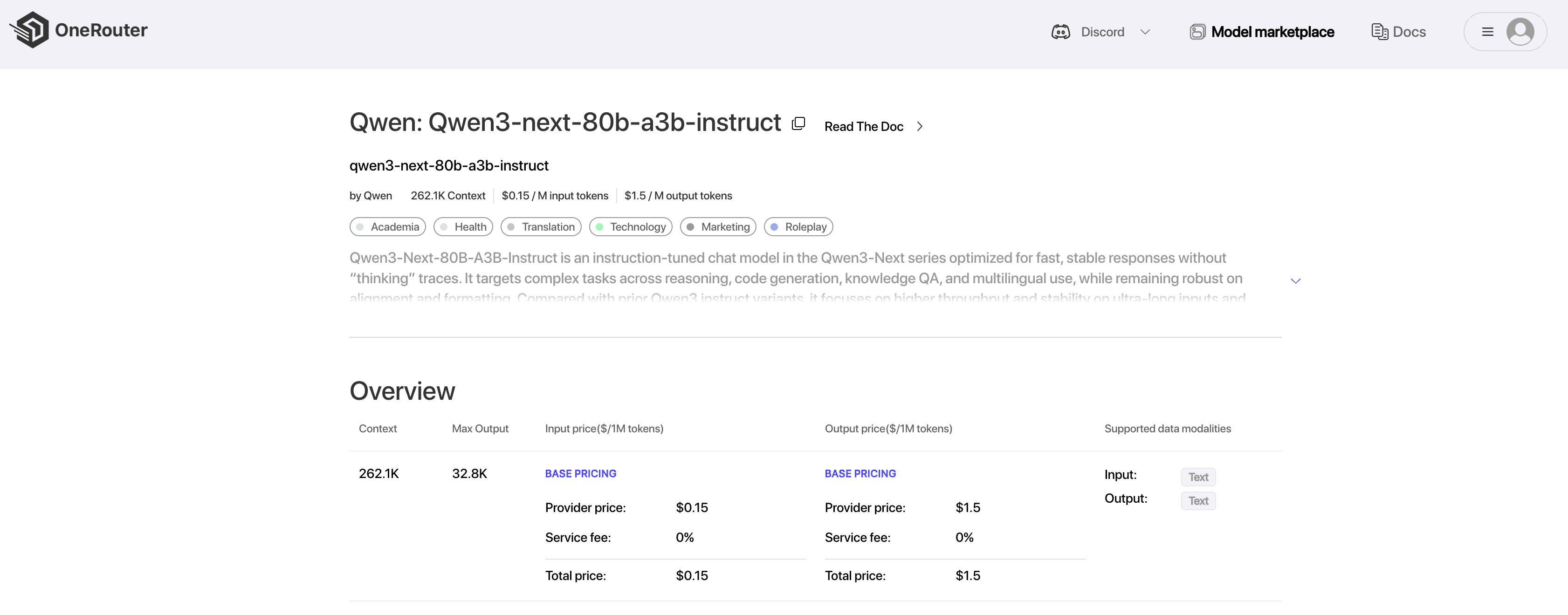 Top Qwen3-Next-80B-A3B API Provider: OneRouter